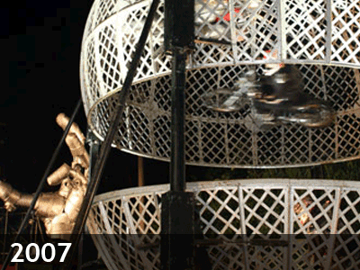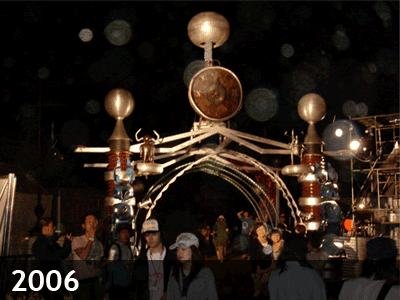 この年新たに追加されたものは、MutoidのSamのシルバーに塗られた巨大な赤ん坊の足の巨大ゲートや、メリーゴーランドを始めとする、お客さんが乗ったりして楽しめるオブジェが多数作られた事だ。メイン・アリーナの目玉はグローブ・オブ・デス。3台のバイクが球体の中を走り回り、そのすれ違いざまのバイク同士の隙間は目を覆いたくなるほどで、最後にはその球体が二つに分かれてしまうというスリリングなショーだった。Joana Peacock率いる原始人が、ハリボテの大きな岩と共に会場内を練り歩いた。すっかり定番となったクリスタル・パレスではTan Tan & the Cool Wise MenやStranger Cole & the Dreamletsらジャマイカのレジェンドに加え、あのJonathan Richman そしてオーサカ=モノレールとMarva Whitneyの豪華なコラボレーションなど前年をしのぐ強力なラインナップとなった。DJブースではキング・ナベ、エゴラッピンの森雅樹、DJ Jin、Wild Jim West、DJ MuroそしてDJGらがフロアーを沸かせた。綱渡りヴァイオリニストのクワバナ・リンゼイは楽しいジプシーサーカスで毎晩その日の最後を飾り、ルーキー・ステージは終日に渡って盛り上がりを見せ、客で溢れていた。まさにラッシュ時の満員電車さながらの盛況だった。
